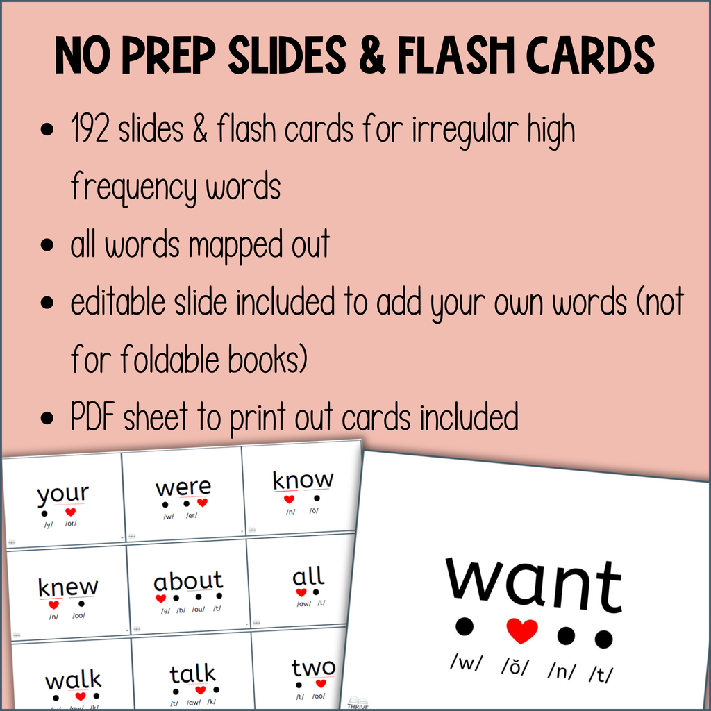 - 192 slides displaying mapped out irregular high frequency words (Google & Power Point)