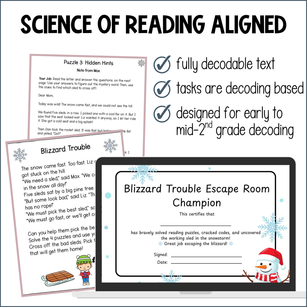 This winter-themed escape room blends reading comprehension, vocabulary, and phonics into one snow-filled adventure - no scissors, prep, or tech needed!